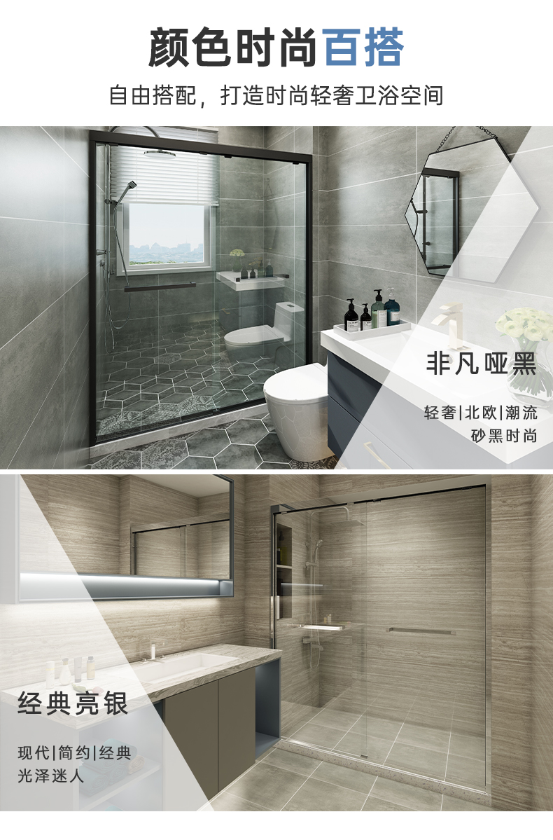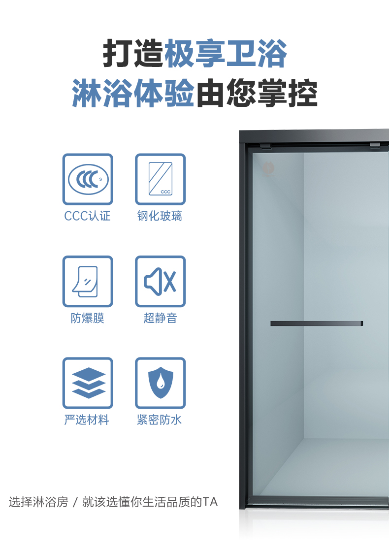 淋浴房系列名稱:FW系列 五金顏色:雅黑/雅白